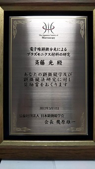 Saito received the Research Encouragement Award from the Japanese Society of Microscopy.